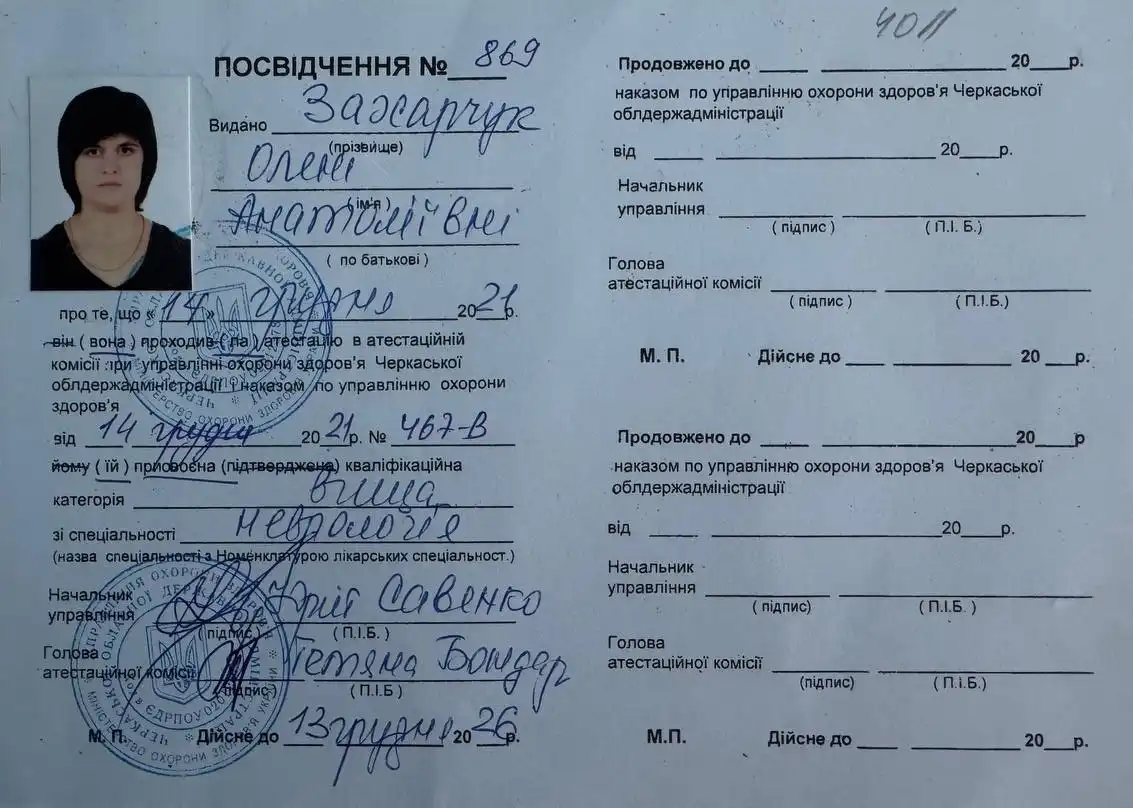 Работала в неврологическом отделении для больных с нарушением мозгового кровообращения Черкасской областной больницы.