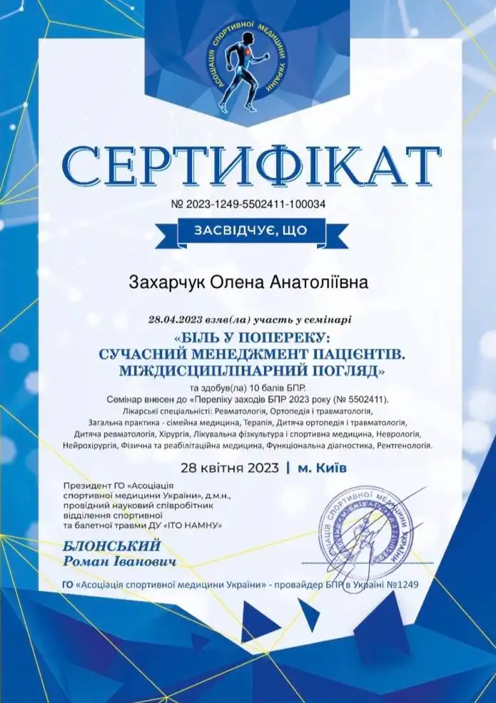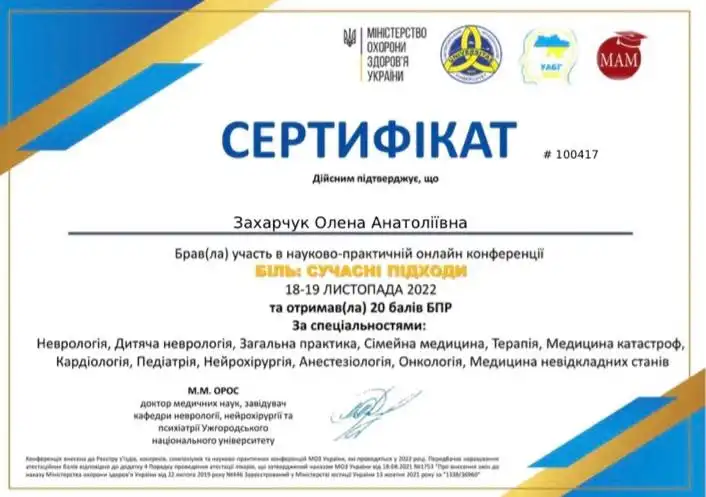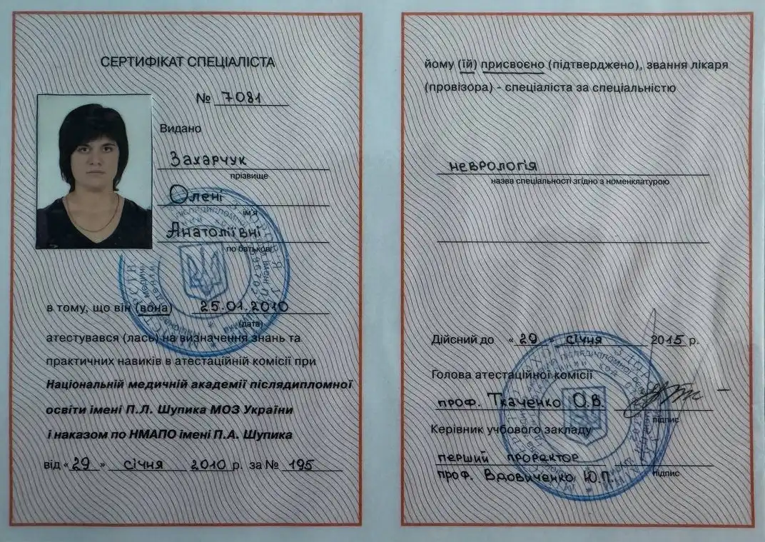 Прошла интернатуру по специальности неврология в медицинской академии последипломного образования им. П.Л. Шупика.