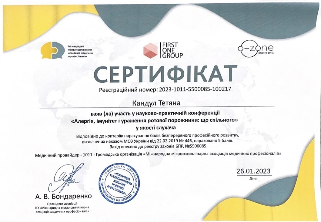 Закінчила інтернатуру в КМАПО ім.Шупика за спеціальністю «Терапія»